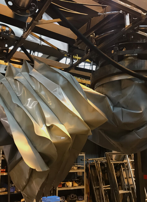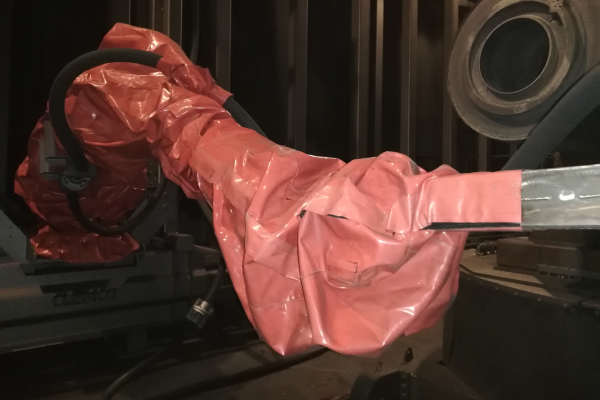 Pokrowce ochronne linii EVO_blast dla zabezpieczenia robotów FANUC M710iC śrutujących detale metalowe